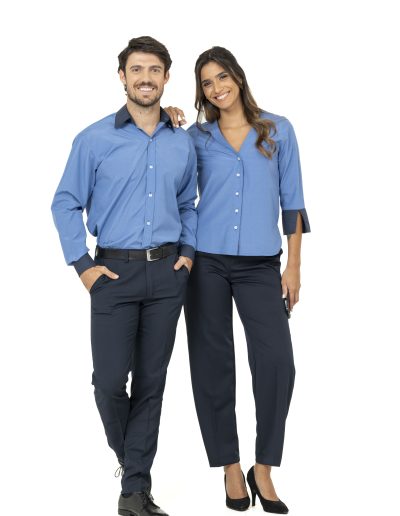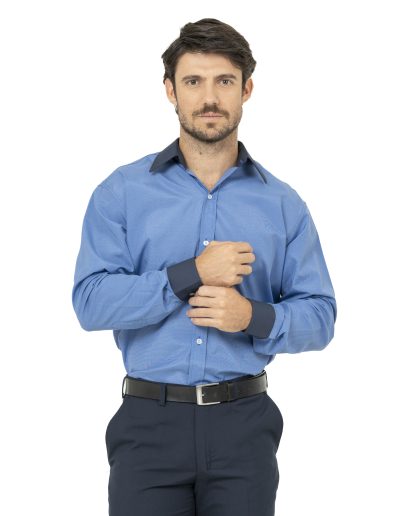 - Camisa Hombre 62H5014: corte recto, manga larga, con cuello y puños a contra tono.