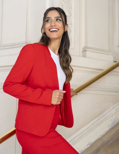 - Chaqueta 62320: Chaqueta recta, cuello a la base, con bolsillo ojal y juego de pinzas ranglan.