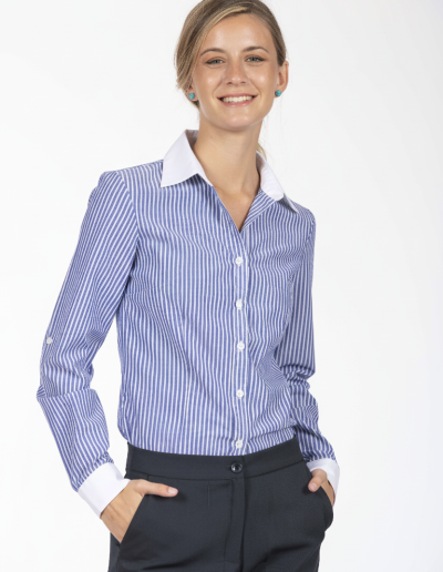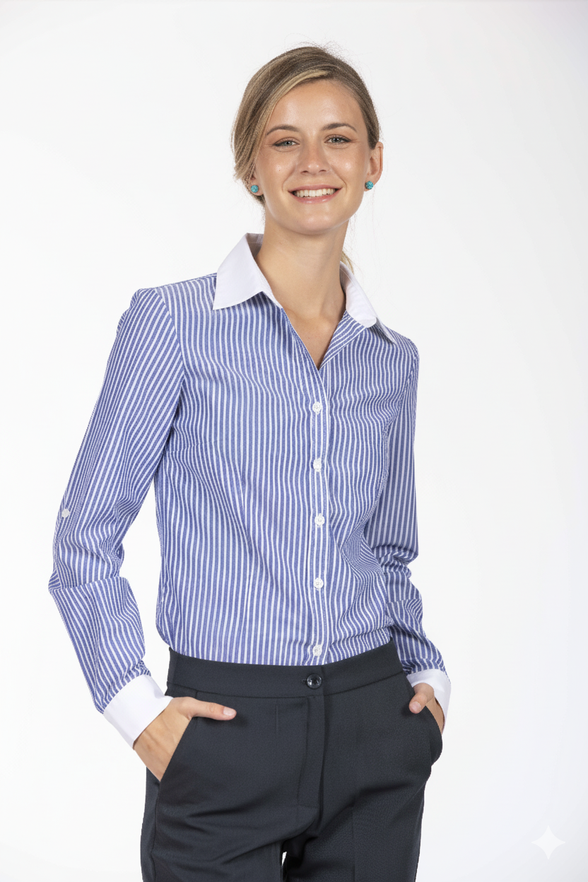 - Camisa 635344: Manga larga con presilla para arremangar, cuello camisa clasica, corte semi – entallado. Puños y cuello a contratono.