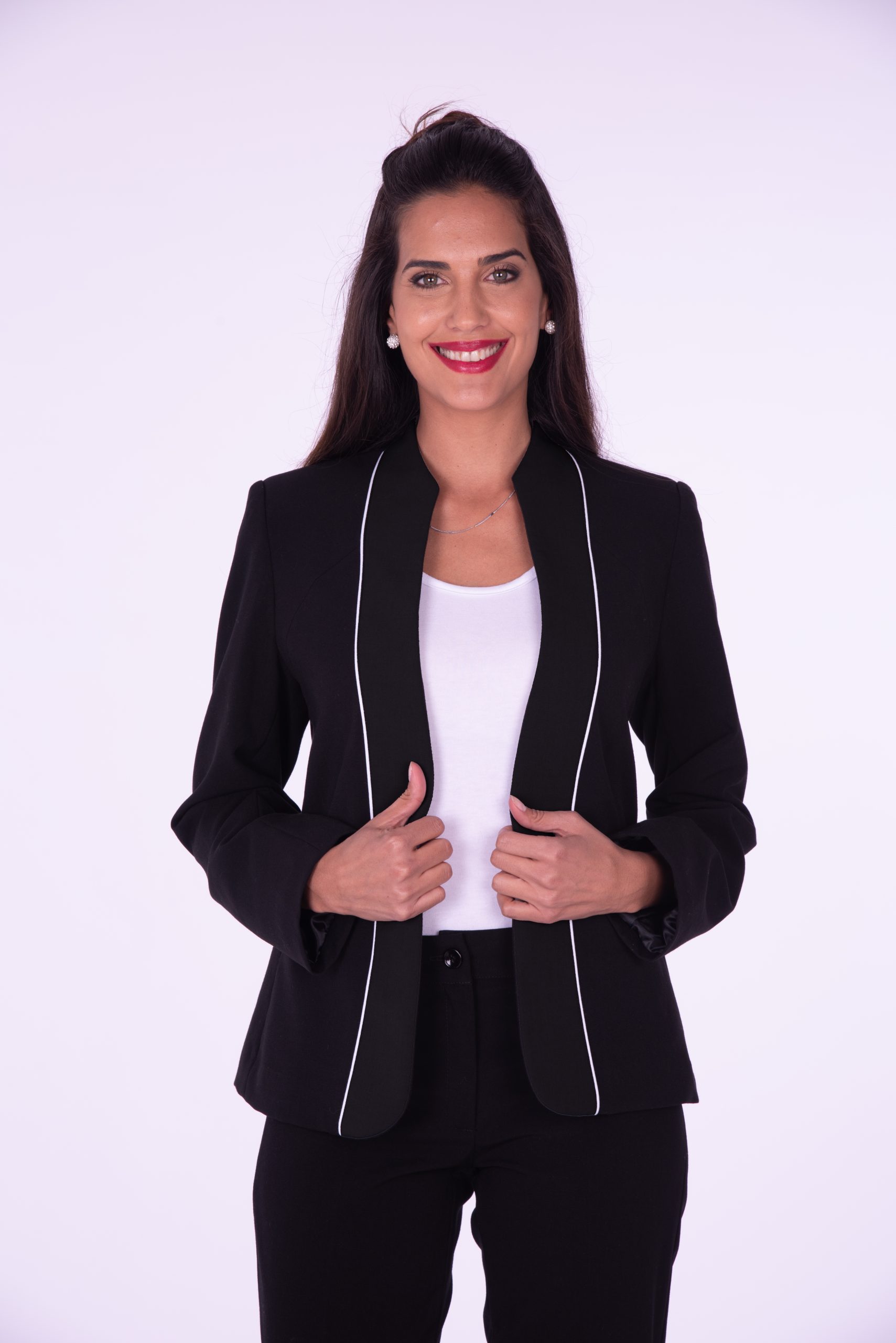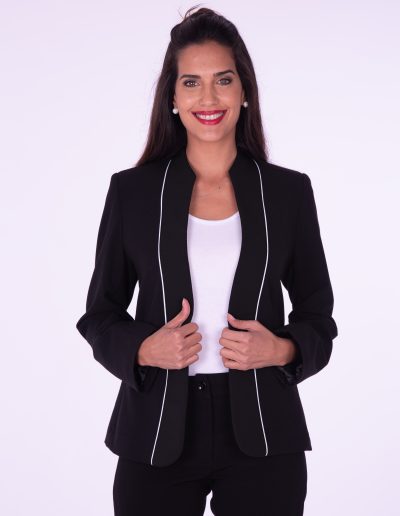 - Chaqueta 63321: Chaqueta recta, cuello a la base, con bolsillo oja y vivo a contratono en recorte central delantero.