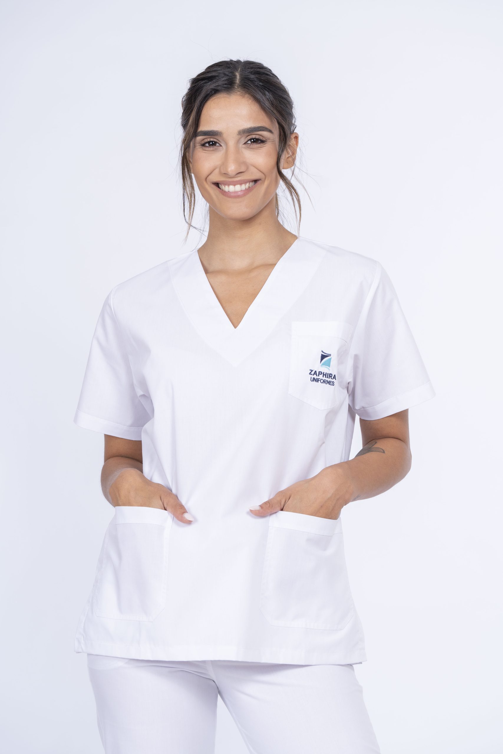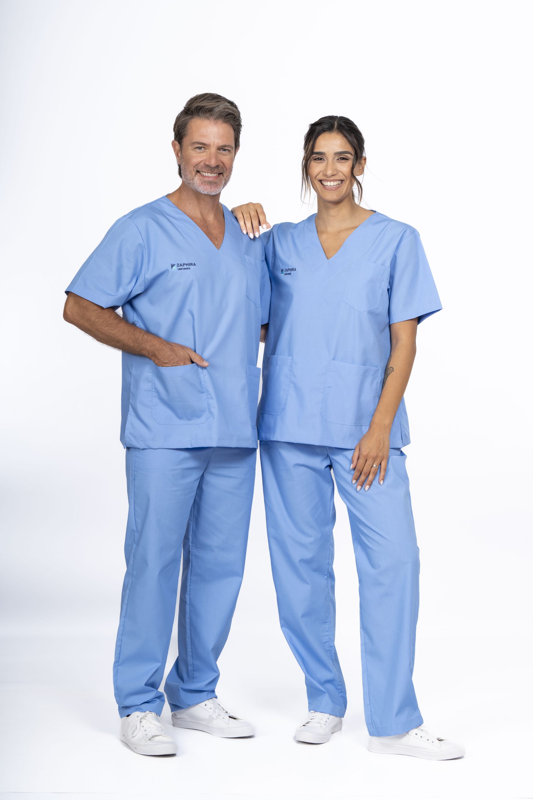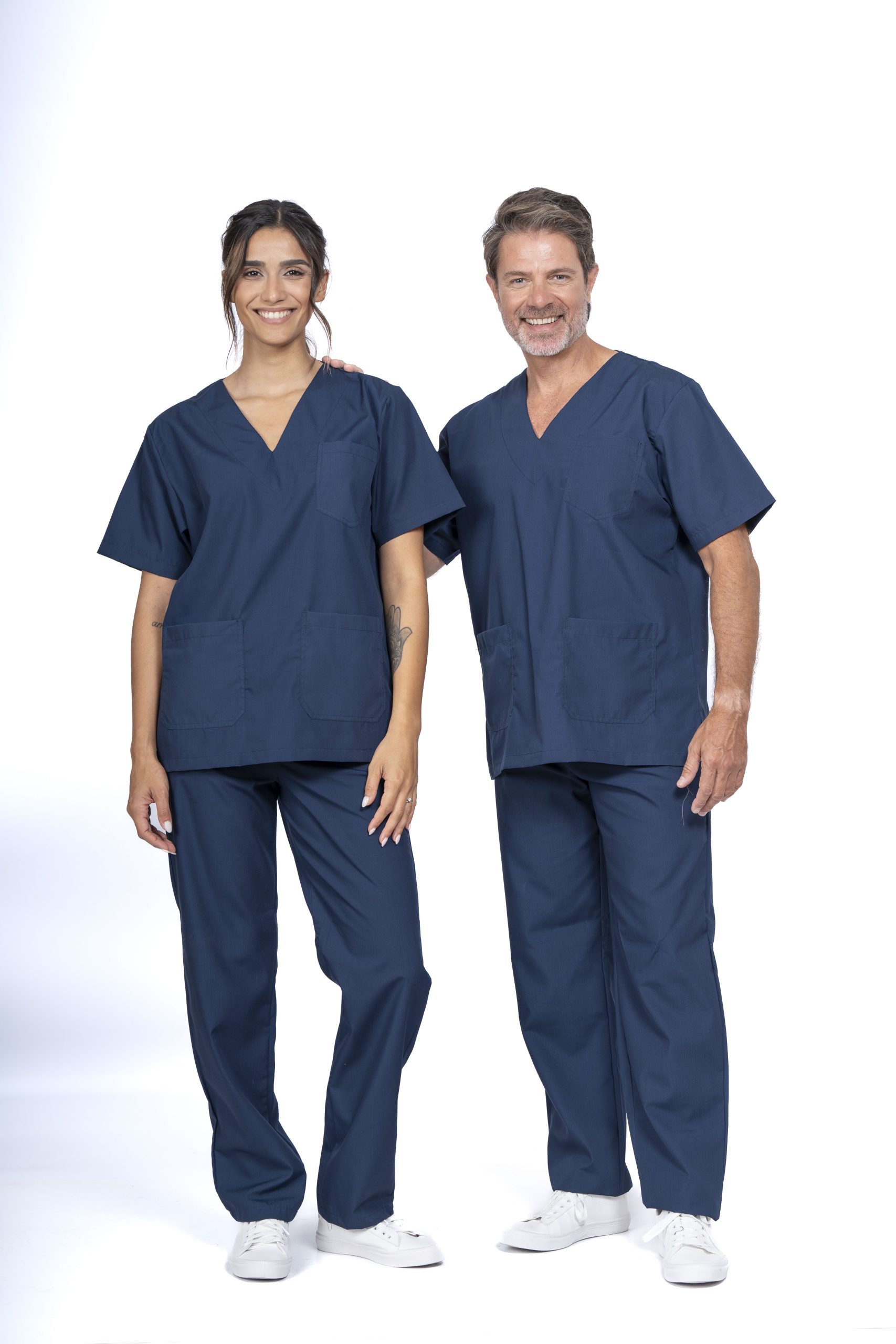 • AMBO UNISEX A900: Ambo clásico con chaqueta escote en V y tres bolsillos frontales. Confeccionado con tela ARCIEL y costuras reforzadas.