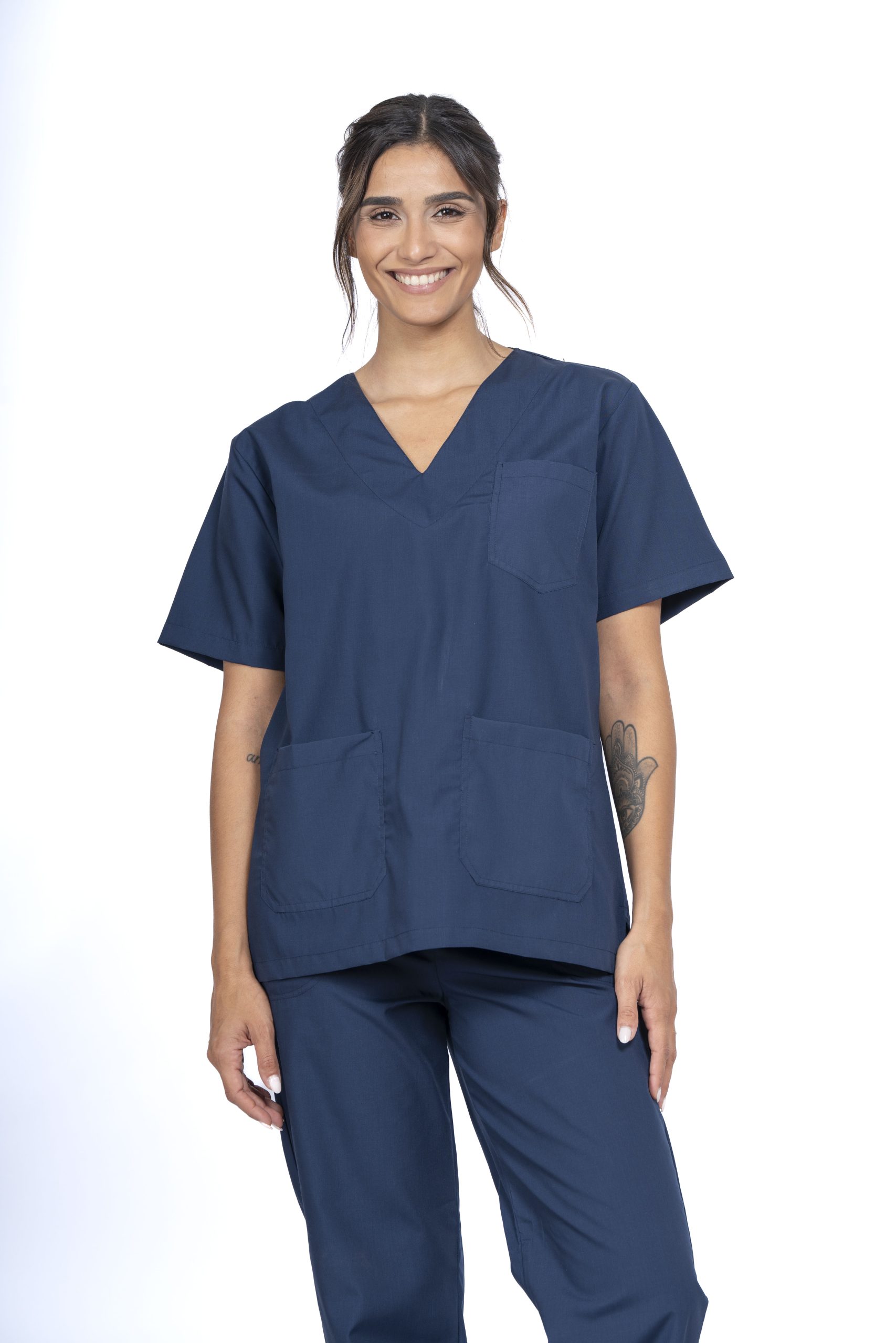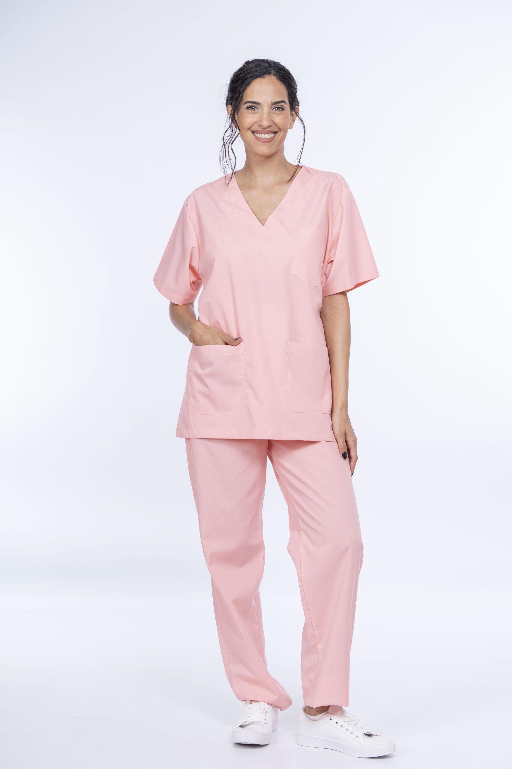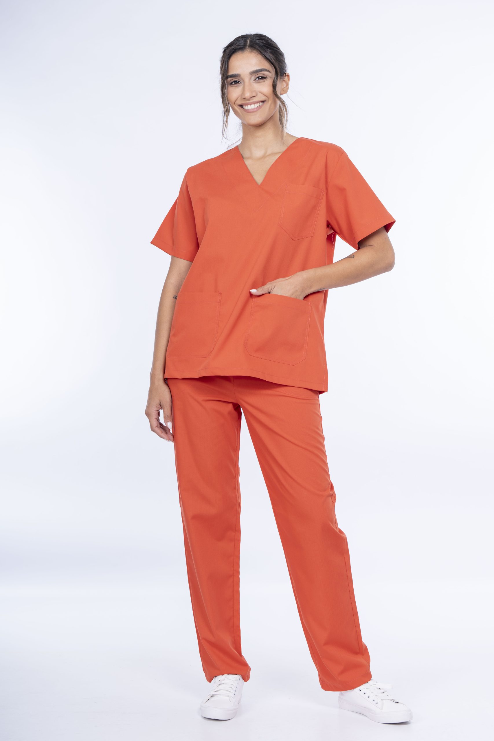 • AMBO UNISEX A900: Ambo clásico con chaqueta escote en V y tres bolsillos frontales. Confeccionado con tela ARCIEL y costuras reforzadas.
